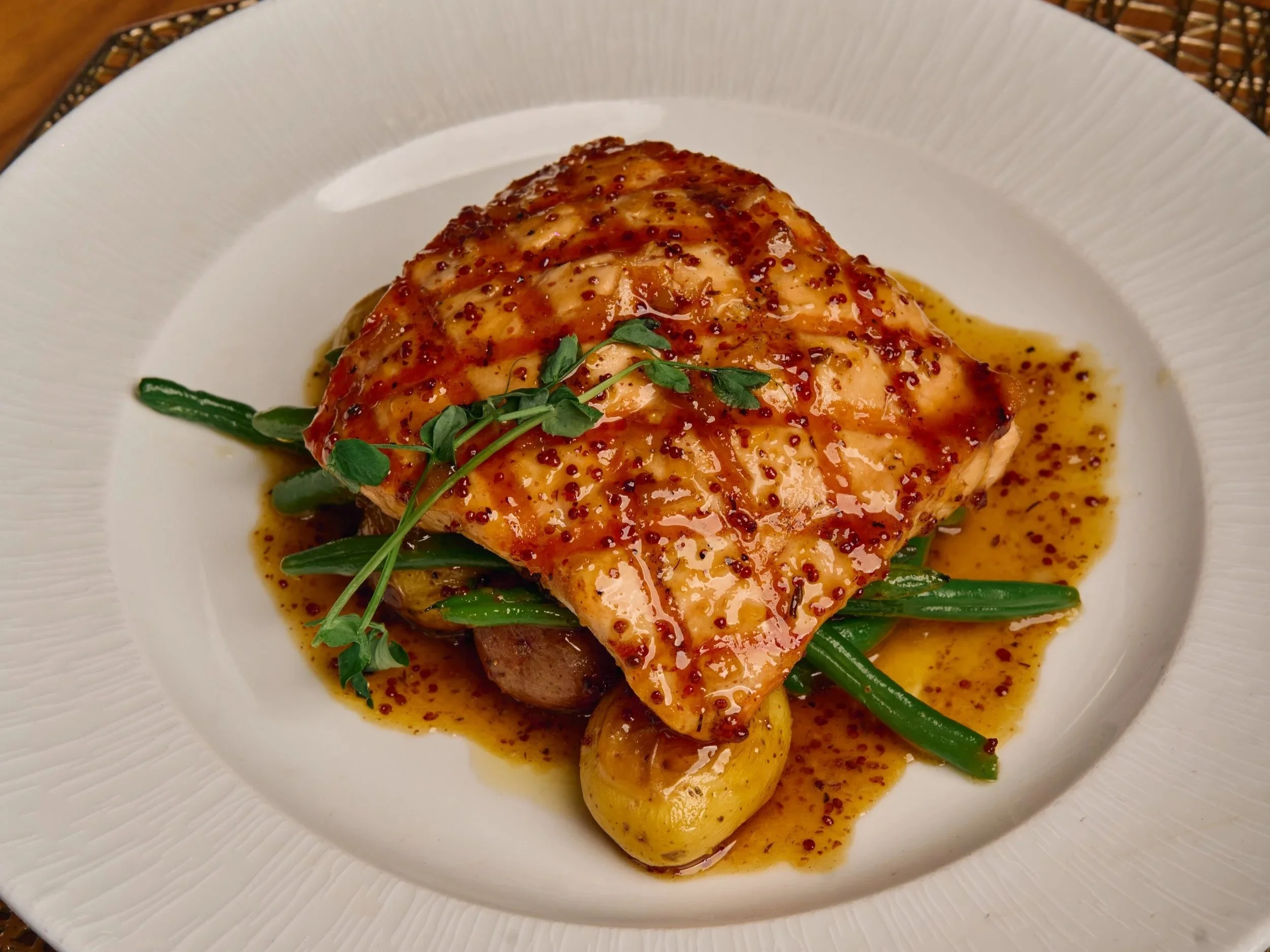 Maple Mustard Glazed Sixty South Salmon at Spotos Fish & Oyster in Palm Beach Gardens